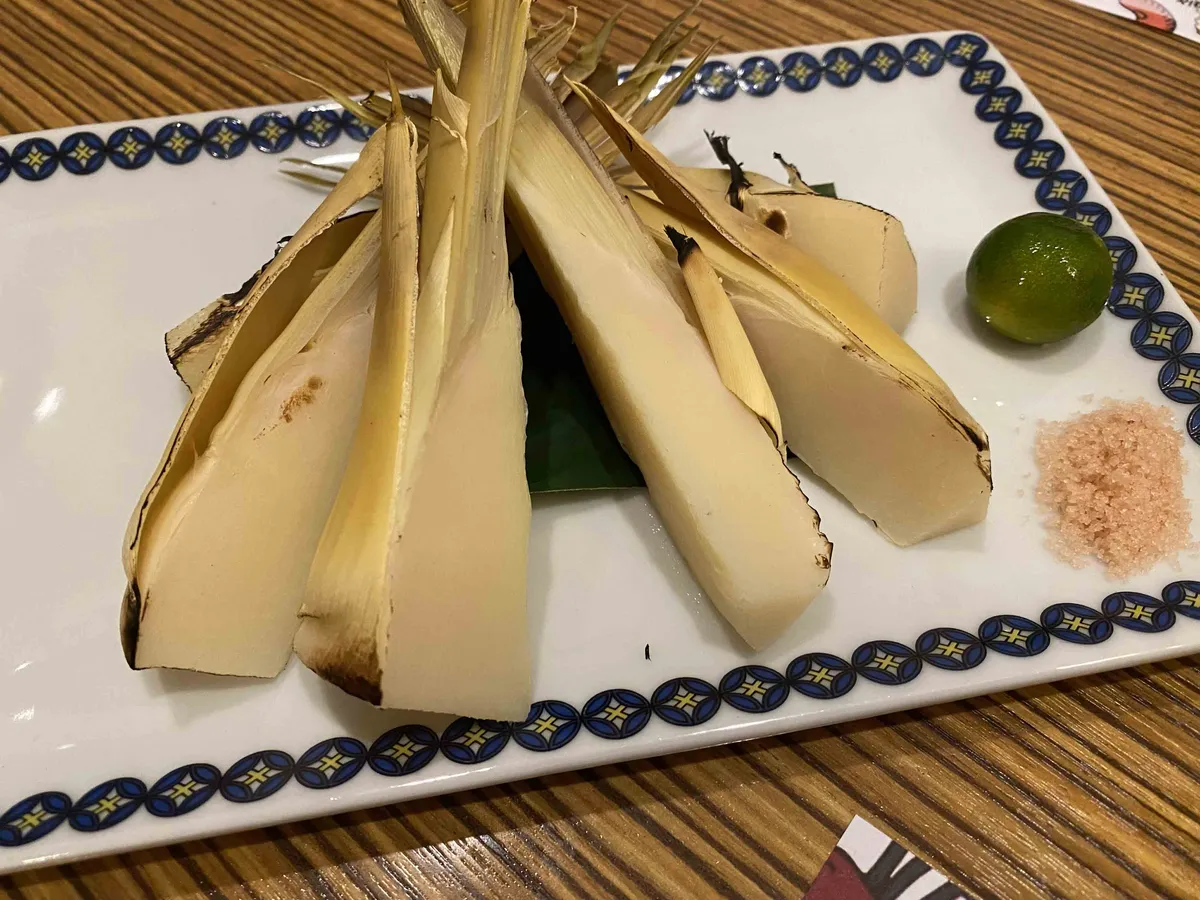 charcoal-grilled bamboo shoots.