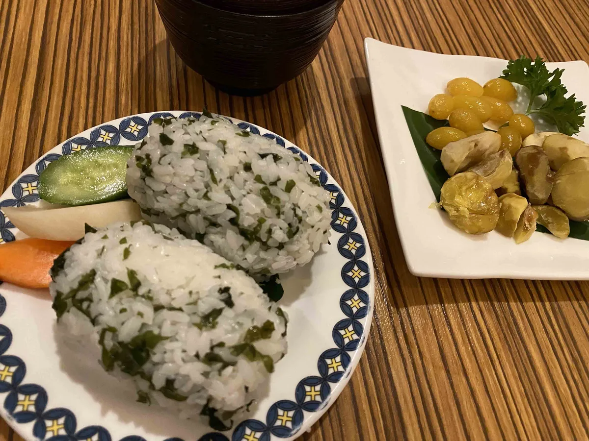 i need more than just two rice balls more more.