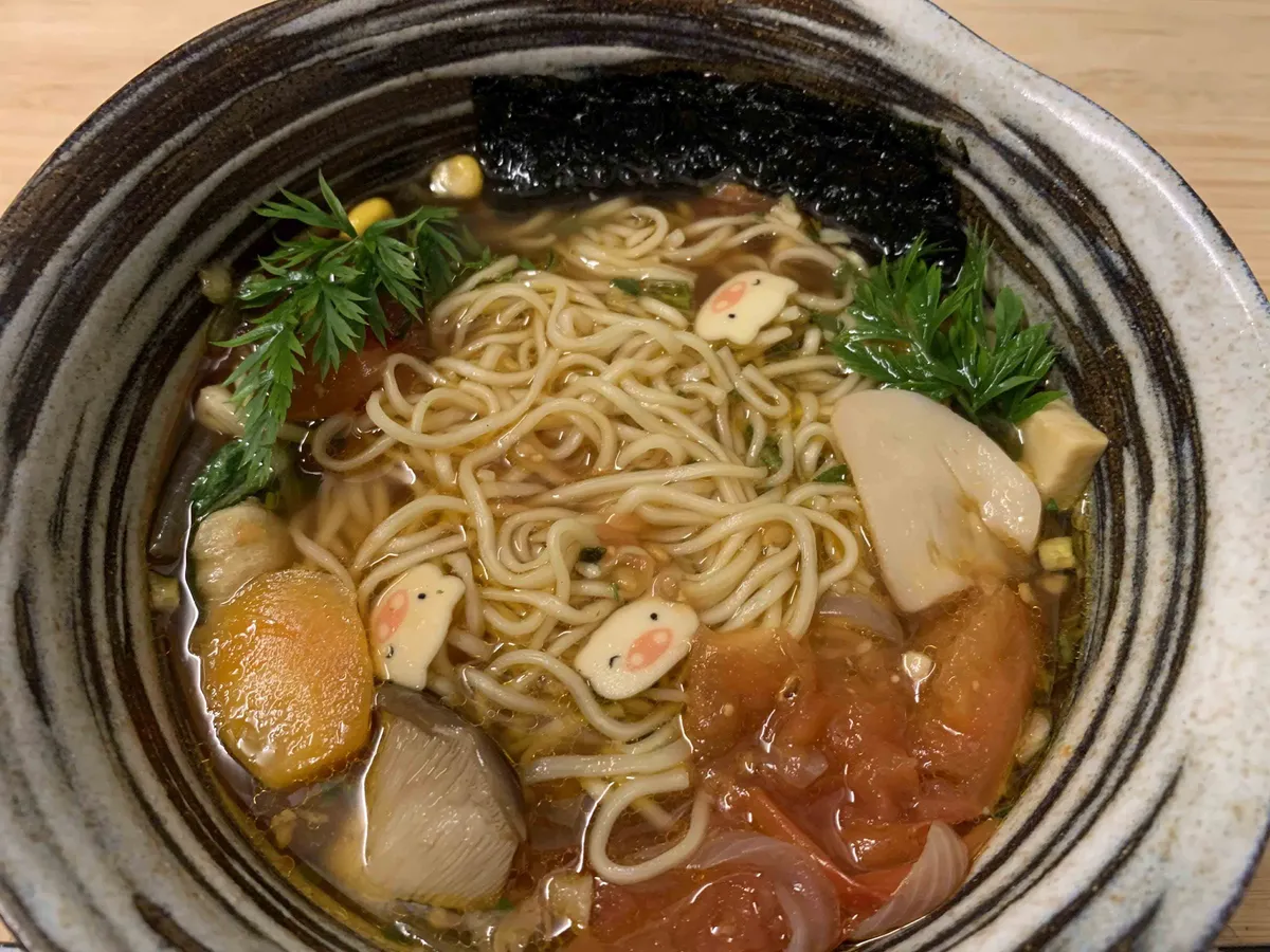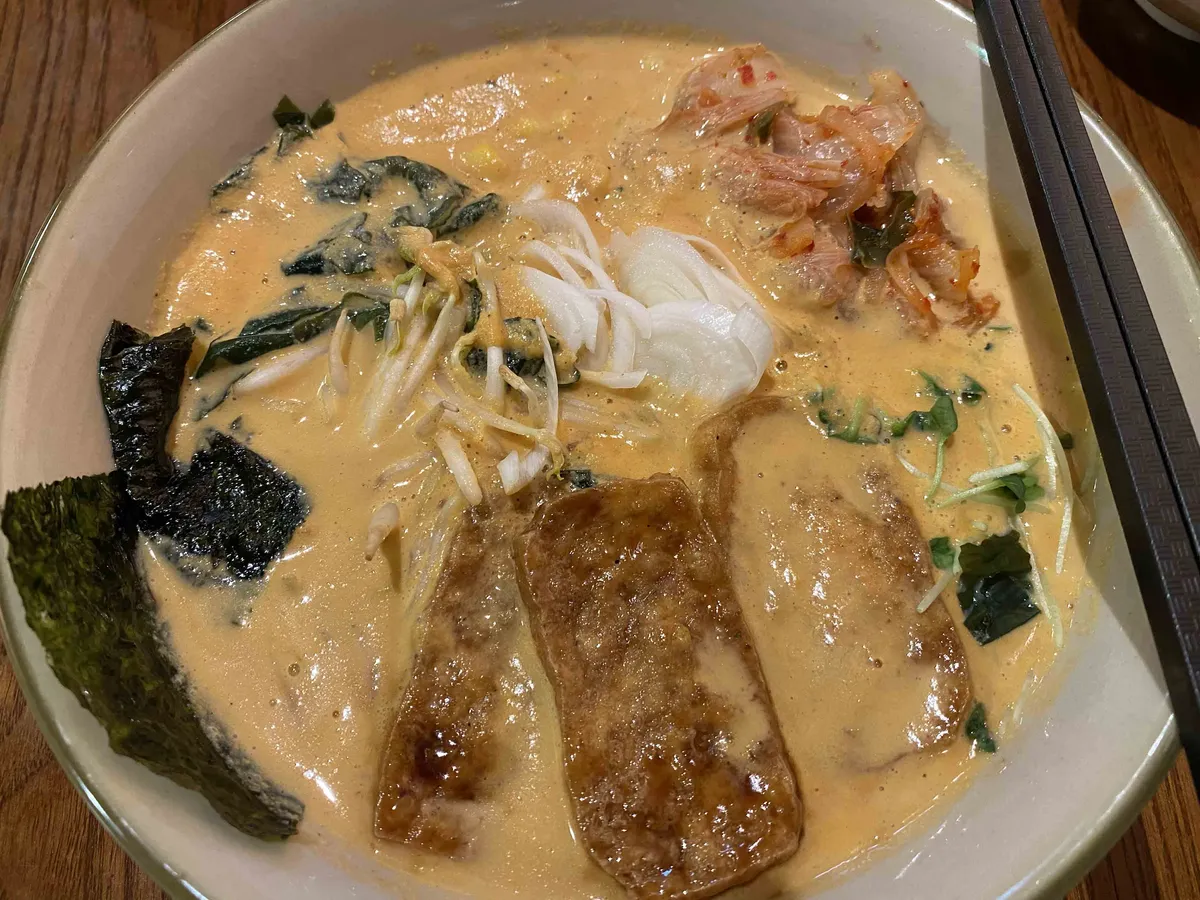 plant-based miso ramen with soy milk broth.